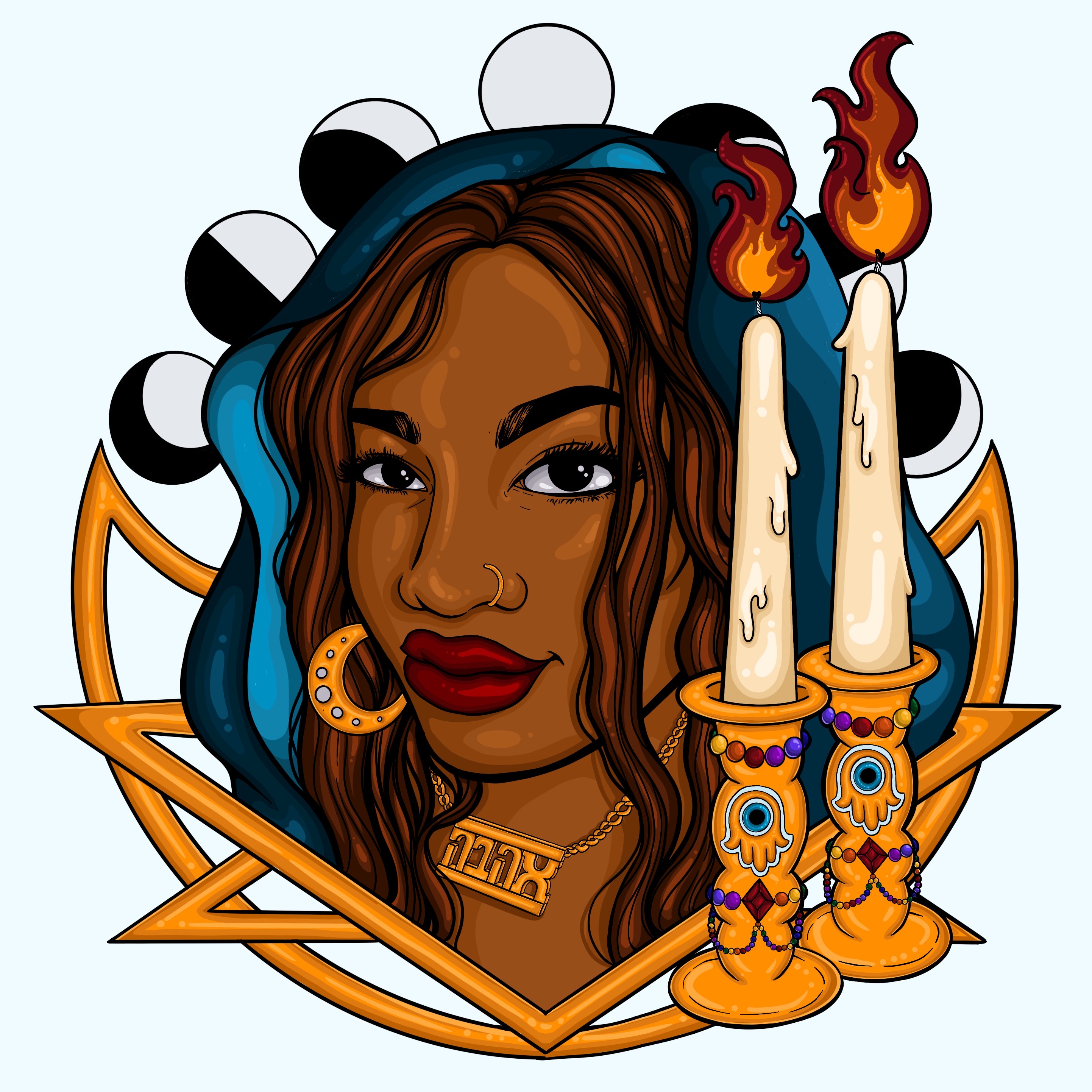 A portrait inspired by a lovely soul, celebrating Black Jewishness and the blessing of Shabbat.